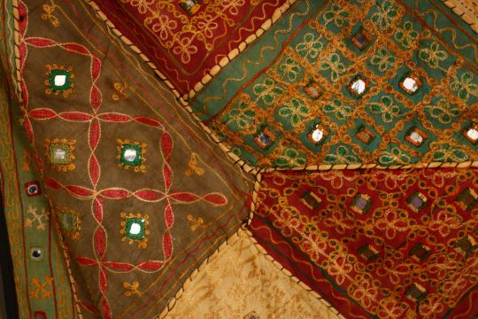 TWO ISLAMIC TEXTILES, both with stitched in mirrored sections, 150cm x 100cm and 100cm x 95cm.