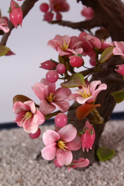 A JAPANESE CARVED HARD STONE FIGURE OF A BONSAI, depicting a cherry blossom tree, 42cm high x 25cm wide.