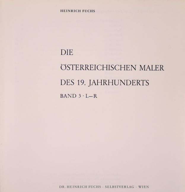 'DIE OSTERREICHISCHEN MALER DES 19. JAHRHUNDERTS'. By Heinrich Fuchs. Vols. 1-4, A-Z. With dust cover.