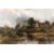 Attributed to Frederick Waters Watts (1800-1870) British, Figures with a horse and cart crossing a stream with cottages and a church beyond, oil on canvas, 21.5" x 32".