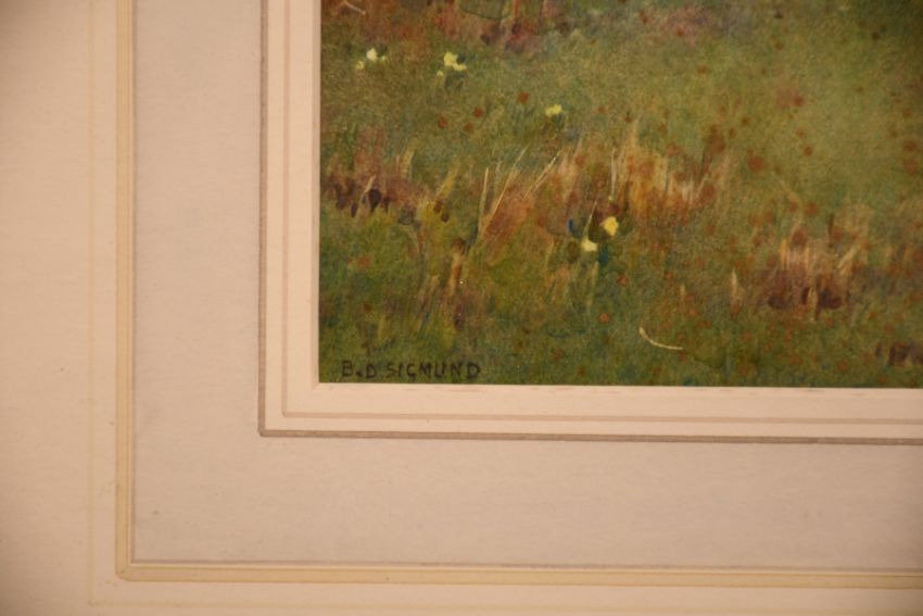 Benjamin Sigmund (1857-1947) British, A Shepherd and his flock beneath blossom, watercolour, signed, 14" x 10".