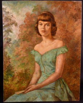 Sabinha Bozcali (1904-1998) Turkish, A portrait of a seated elegant lady holding a fan, oil on canvas, signed, 34" x 26", (Unframed).