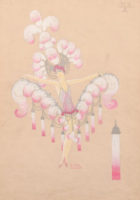 Louis Gaudin (1882-1936) French, two watercolour and pencil drawings of Art Deco costumes, signed 'Zig', one 18"x12" the other 18"x9" (2).