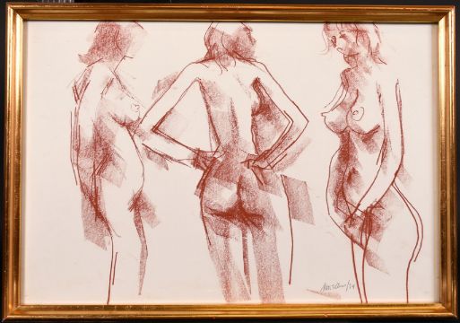 Peter Collins, A study of three female figures, crayon, signed in pencil and dated 79, 13"x18". Provenance: Collins Studio Sale.