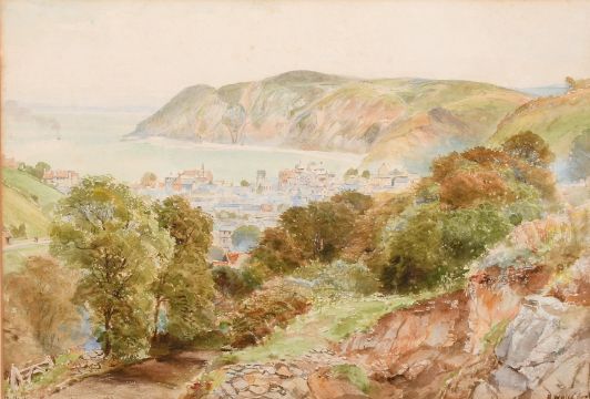 Ebenezer Wake Cook (1843-1926) British, A view of Lynton with a coastal landscape beyond, watercolour, signed and dated '1901', 10" x 14".