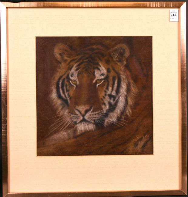 20th century British, A head study of a tiger, chalk, 11.5" x 11.5".