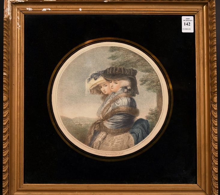 J. R. Smith (1751-1812), 'An Evening Walk', Two ladies in a landscape scene, inscribed 'Designed & engraved by J. R. smith', engraving, in a Verre Eglomise frame, 9" x 8.5".