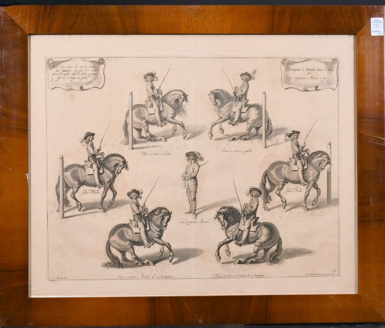 Lucas Vosterman (1624-c.1670) Belgian Arthur Abraham van Diepenbeek (1596-1675) Dutch. "A general system of horsemanship in all its branches", engravings, unframed 14.75" x 19.5", a companion piece, together with seven other framed works by various hands, nine (9).