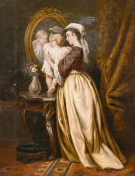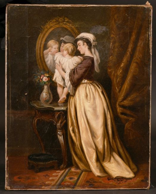19th century continental school, A mother and child in a lavish interior, oil on canvas, 9.75" x 7.75", (Unframed).