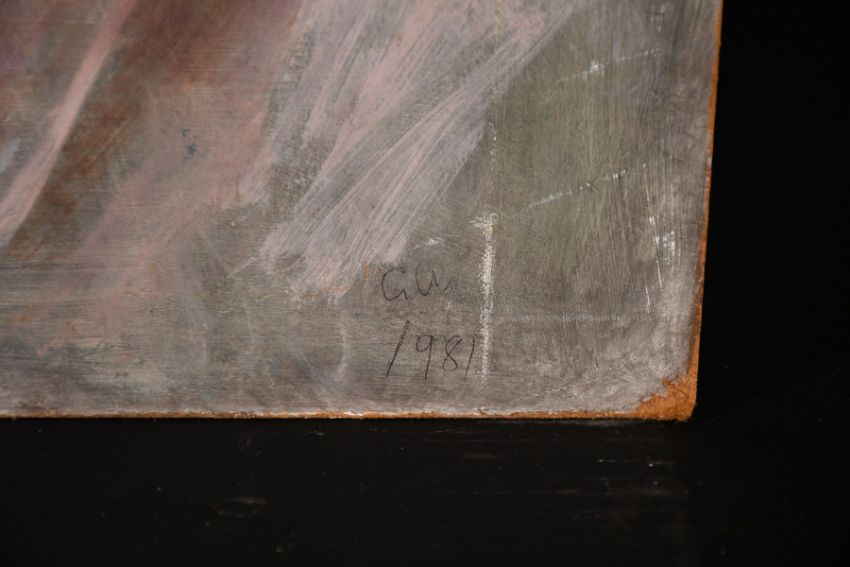Geoffrey Underwood (1927-2000) British, bust portrait of a man (the artist?), Oil on board, signed with initials and dated '1981', unframed, 20" x 14.25".