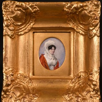 Early 19th century school, A pair of miniature portraits of a couple, watercolour, in fine swept gilded frames, 3" x 2.5", (2).
