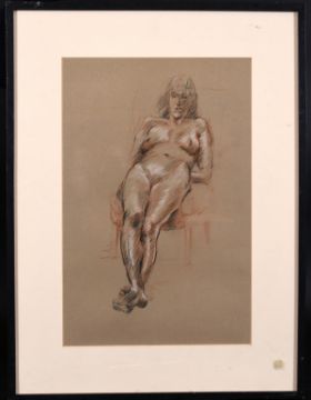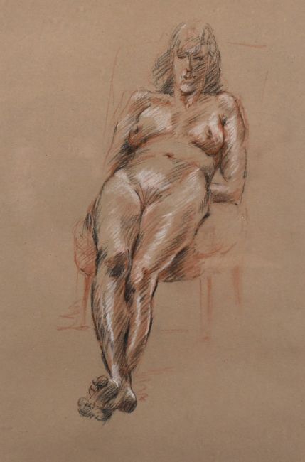 Peter Collins, a seated nude, chalk and charcoal, 14"x9". Provenance: Collins Studio Sale.