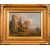19th century English school, A scene of figures conversing by castle ruins with the sea beyond, oil on canvas, 12" x 16".