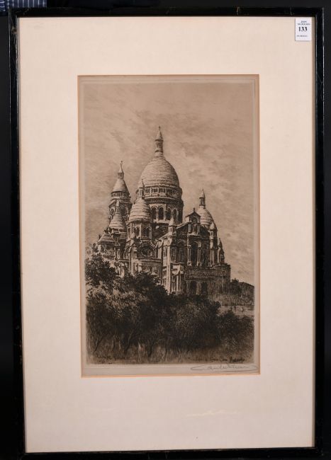 Lucien Gautier (1850-1925) An etching of a view of Basilique du Sacre Coeur, Montmartre, indistinctly signed in pencil, 16" x 19".