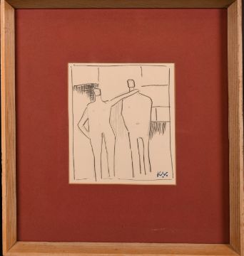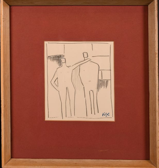 Attributed to Keith Vaughan (1912-1977) British, A study of two figures, pencil, with studio stamp, 7.5" x 6".