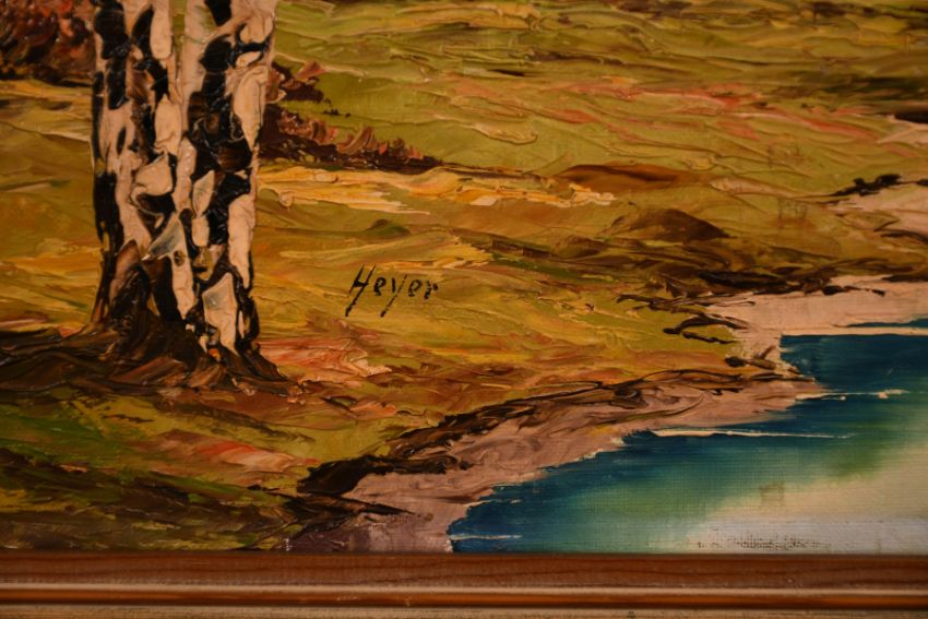 Rachel Neeves (20th century) British, 'The Heart of the Wood', oil on panel, signed, 12" x 20". And another 20th century oil of a landscape with distant mountains, oil on canvas, signed 'Heyer', 20" x 24", (2).