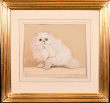 Lew Helyes, circa 1970, A study of a white kitten, pastel, signed, 10" x 12".