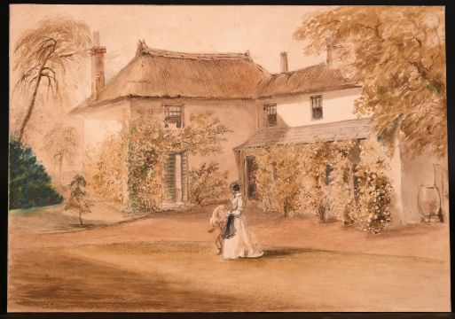 Attributed to C.F. Buckley, A lady and a child outside a cottage, watercolour, 9" x 12.75". (Unframed).