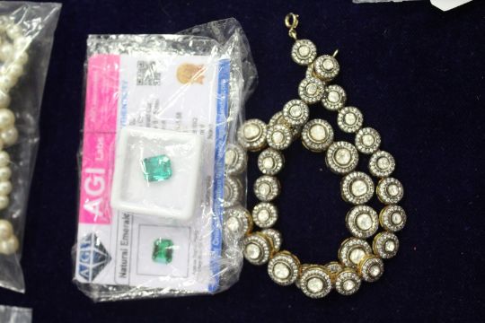 A natural emerald and an Indian gilt metal necklace.