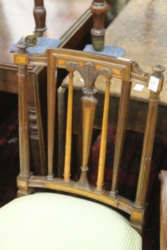 A good pair of Edwardian mahogany and satinwood inlaid bedroom chairs.