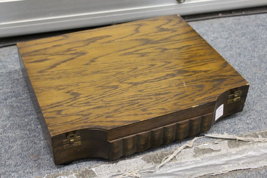 An oak cased canteen of cutlery.