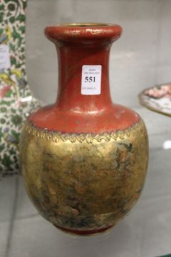 A Japanese vase, red ground with gilt decoration.