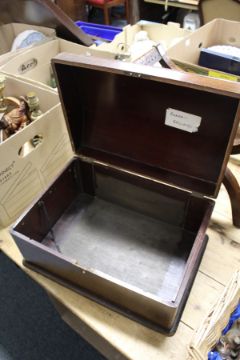 A small dome top trunk and a stool frame.