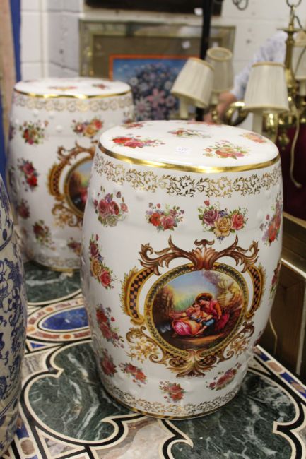 An unusual pair of Chinese barrel seats decorated in the European style.