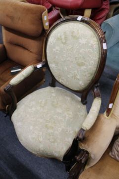 A Victorian rosewood framed open armchair on cabriole legs.