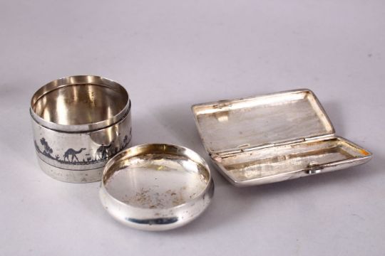 AN IRAQI SILVER AND NIELLO CIRCULAR BOX AND COVER, together with a similar small hinged box, 5.5cm and 8cm wide.