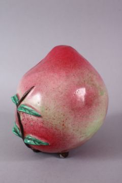 AN UNUSUAL 19TH CENTURY OR EARLIER CHINESE FAMILLE ROSE PORCELAIN MODEL OF A PEACH, the peach with a nice pin / green graduating glaze, with the raised moulded foliage decoration to the body, 14cm high x 14cm.
