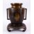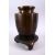 A JAPANESE MEIJI PERIOD BRONZE & MIXED METAL INLAID VASE & STAND with decoration of two figures in a landscape, 30cm high x 20cm.