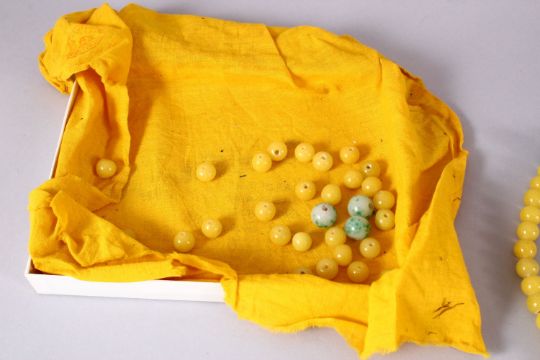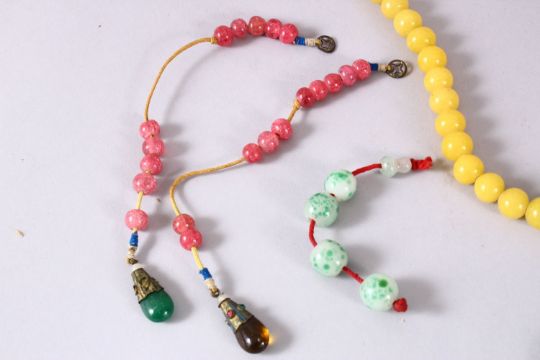 A CHINESE 19TH CENTURY MIXED LOT OF CARVED HARD STONE BEADS - POSSIBLY FORMING A COURT NECKLACE, with a multitude of hard stones in various colours and sizes.
