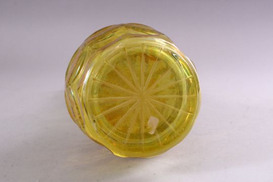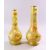 TWO 20TH CENTURY ISLAMIC GREEN GLASS HUQQA BASES / VASES, both with floral and scrollwork enamelled decoration, 30cm and 33cm high.