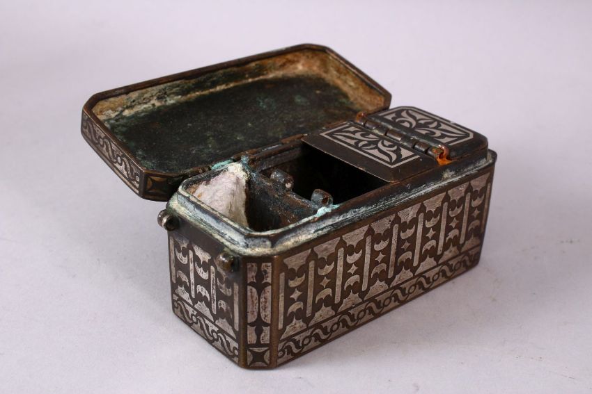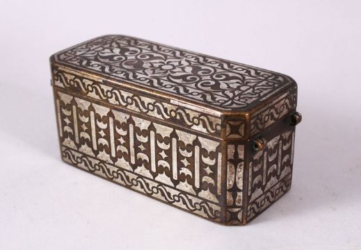 A 19TH CENTURY PHILIPPINES SILVER INLAID BETEL LEAF BOX, 12cm long.