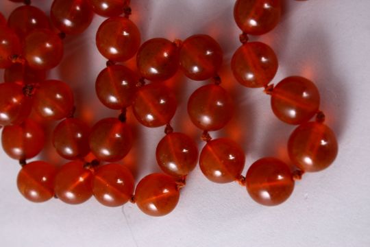 A 19TH CENTURY SET OF CARVED AMBER PRAYER BEADS, in the form of a necklace, comprising 50 spherical beads, approx. 120cm