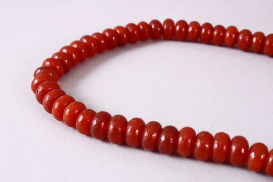 A CHINESE AGATE BEAD NECKLACE, the bead approx 8mm diameter.