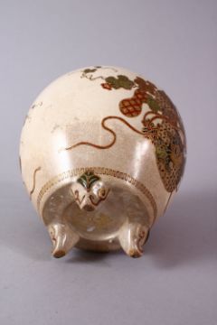 A JAPANESE MEIJI PERIOD IMPERIAL SATSUMA KORO, enamelled with displays of guord and foliage, 13cm high, 12cm diameter.