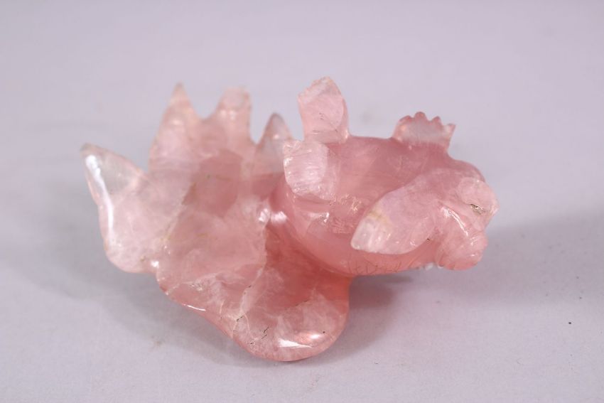 A CHINESE CARVED ROSE QUARTZ FIGURE OF A GOLD FISH, 10cm wide