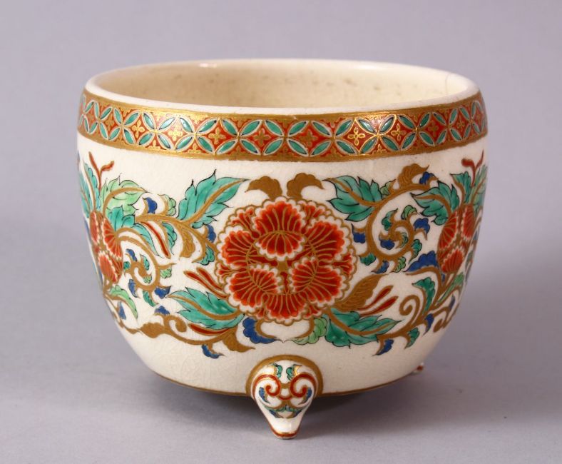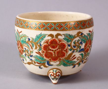 A JAPANESE MEIJI PERIOD IMPERIAL SATSUMA BOWL, with native floral decoration, 10.5cm diameter.