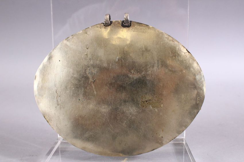 A GOOD ISLAMIC LAPIS LAZULI & WHITE METAL SEAL OF A SCORPION, The stone carved seal inset in to a white metal filigree plaque, 15cm x 12cm.