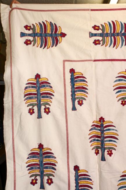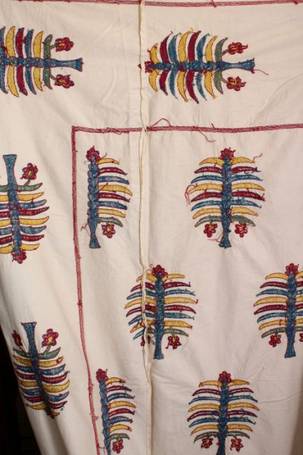 A LARGE ISLAMIC POSSIBLY OTTOMAN TURKISH EMBROIDERED TEXTILE, embroidered stylised trees, approx 250cm x 200cm.