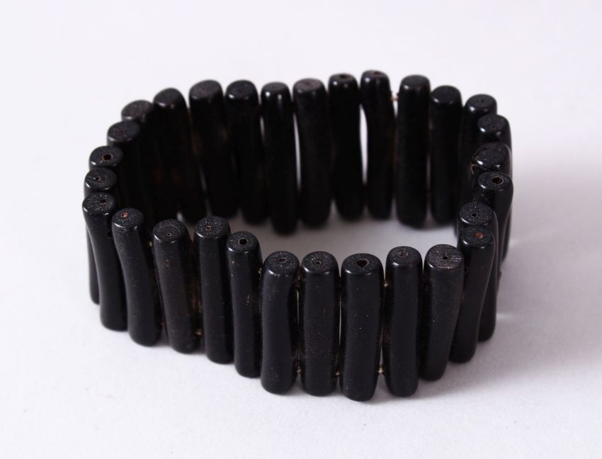A BLACK CORAL BRACELET, open approx. 7cm diameter.