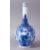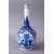 A CHINESE KANGXI STYLE BLUE & WHITE PORCELAIN BOTTLE VASE, with panel decoration of lion dogs and floral display, the base with double blue rings, 26cm