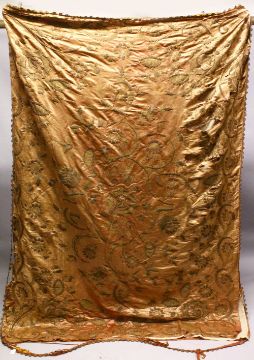 A LARGE 18TH CENTURY OTTOMAN EMBROIDERED TEXTILE, with embroidered decoration of floral design, with decorated borders.