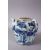 A 19TH/20TH CENTURY CHINESE BLUE AND WHITE TRANSITIONAL STYLE PORCELAIN TEAPOT, decorated with stylised flora, moulded handles and calligraphy, 13cm high, 15cm wide.