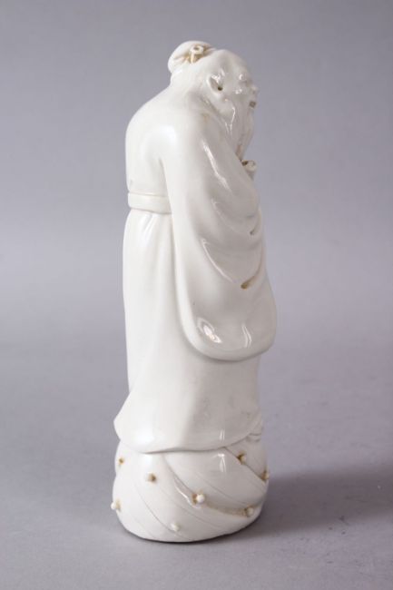 A 19TH/20TH CENTURY CHINESE BLANC DE CHINE PORCELAIN FIGURE of an immortal, 14cm high.
