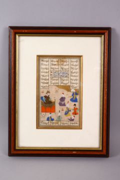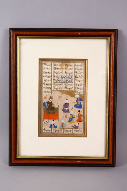A GOOD OTTOMAN PAINTED MINIATURE depicting a court scene, image 18cm x 11cm.