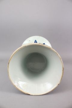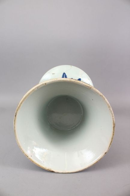 A LARGE CHINESE BLUE & WHITE QIANLONG STYLE PORCELAIN YEN YEN VASE, decorated with borders of lappet above precious object and floral motif display, 36cm high x 23cm wide.