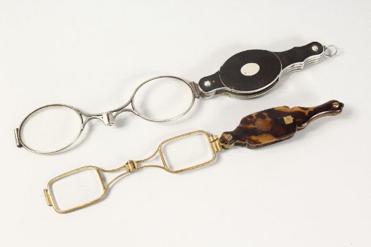 TWO PAIRS OF TORTOISESHELL LORGNETTES. 7cm and 7.5cm (Closed)